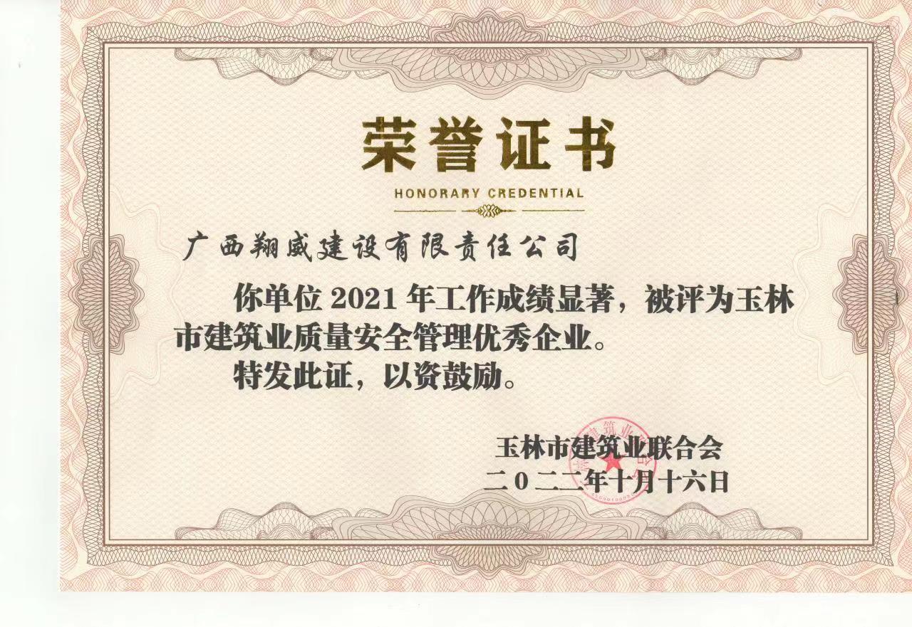 2021年度玉林市建筑业优秀企业经理--周伟波